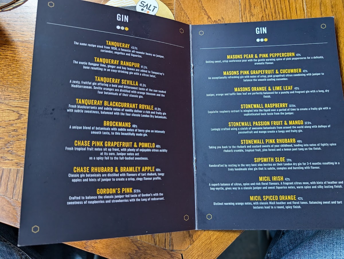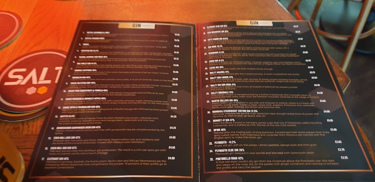 Welcome to SALT Leeds City, a vibrant bar nestled in the heart of Leeds. Located at 27-26 E Parade, this spot is a haven for craft beer lovers and cocktail enthusiasts alike. The menu boasts an impressive selection of local ales, including the cherished Siren: Breakfast Stout and Salt: Tweed Cask Pale Ale, celebrated for their remarkable flavors. For gin aficionados, SALT features exquisite options like Masons Pear & Pink Peppercorn and Micil Irish, promising a delightful experience with every sip.